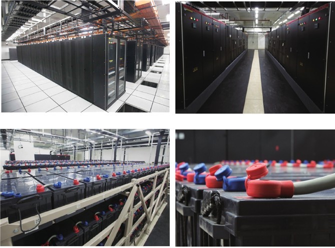 整个机房供电,市电分 ① 华北、 ② 华中、③ 东北三大电网分别引入大厦,单个机房供电,采用不同路的双路径供电楼内2个不同的强电竖井机房采用上走线方式,线缆爬架分为两层,上层为电力线缆使用,下层为通信电缆及高频传输电缆使用,另单设光缆槽道。总供电量15000KVA。每个机柜供电量为13A,冗余电源由2路不同的UPS通过不同的路由为机柜交叉供电。